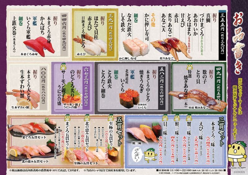 産地直送の新鮮で美味しいネタを、お値打ち価格でご提供しております。