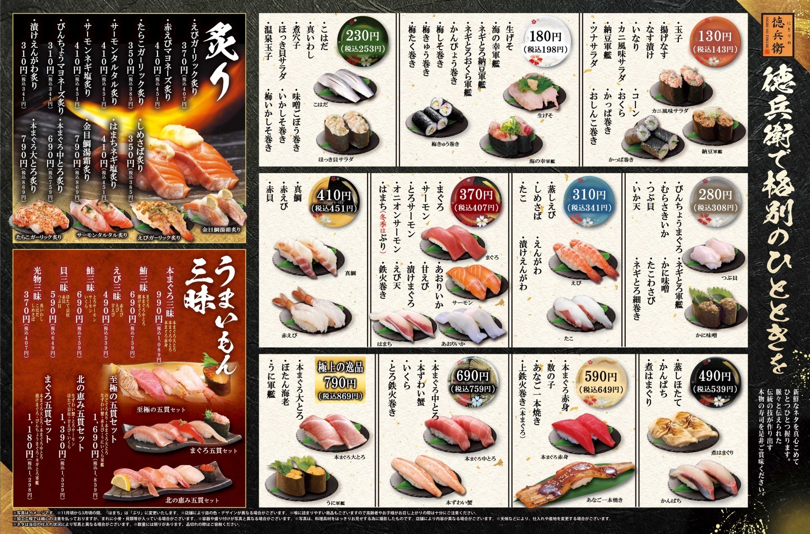 高付加価値を追求した、「和」と「創作」の旬を味わう本格グルメな廻転寿司、にぎりの徳兵衛。