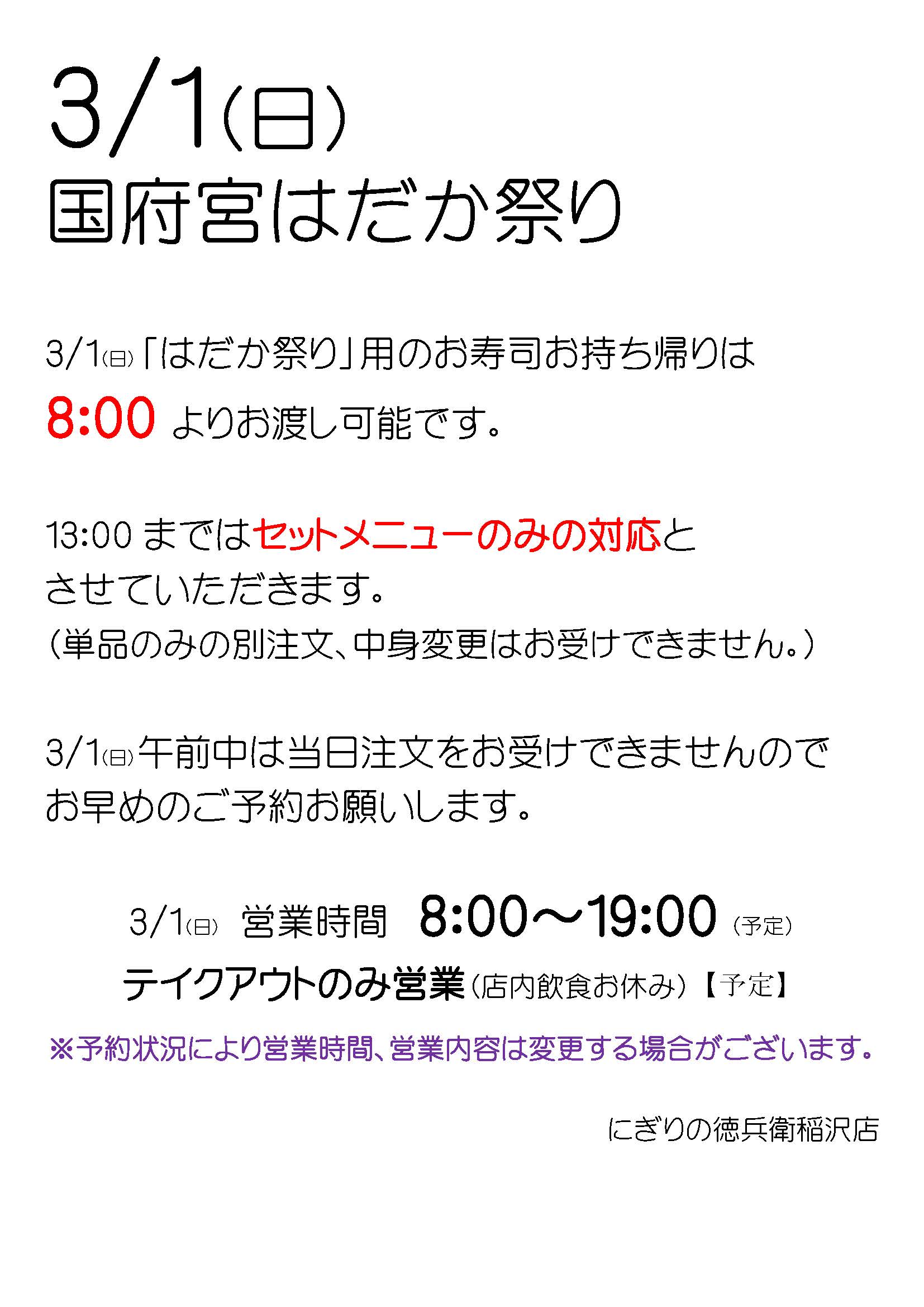 ※上記メニューは稲沢店限定、はだか祭り(3/1)限定メニューです。