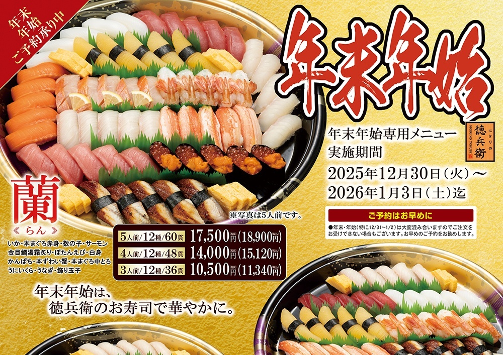・『徳兵衛の日限定7貫盛り』は季節毎に変更します。詳しくはスタッフまでお尋ねください。
